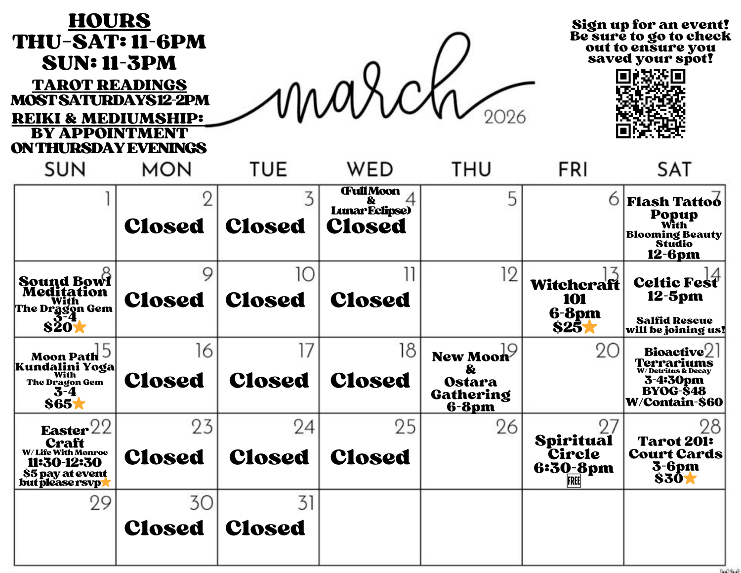 We exist to provide more than products. Our space is a sacred gathering place for spiritual growth, seasonal celebrations, and empowering witchy workshops that honor the cycles of nature and the sabbats. We are committed to supporting local makers, fostering inclusivity, and creating a safe, inspiring environment for all paths and experience levels.