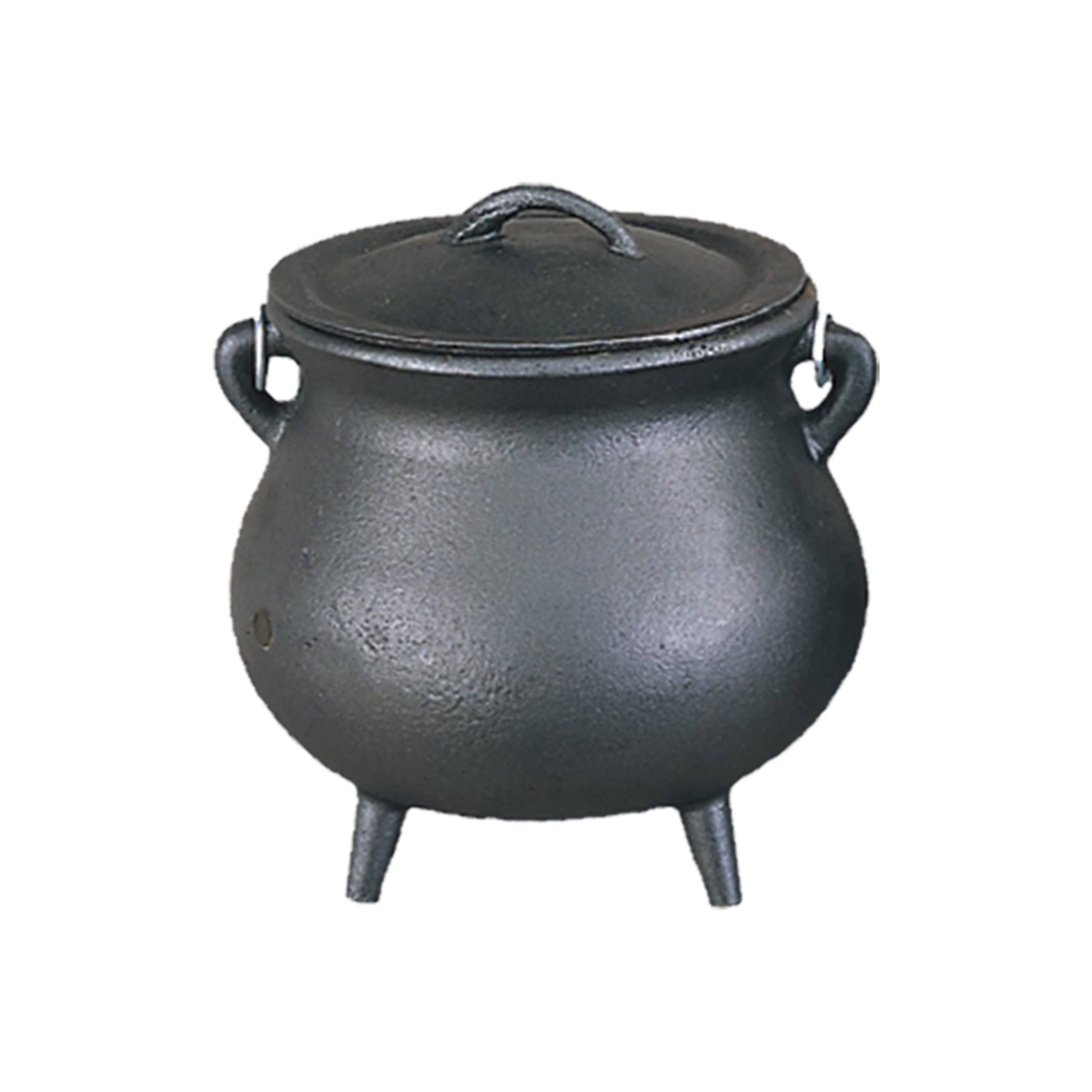 7" Cast Iron Cauldron with Lid, Hanging Handle + Side Handles Heavy duty cast iron construction with carry handle and iron lid for burning incense, offerings, casting spells, cleansing with sages, resins and potions.