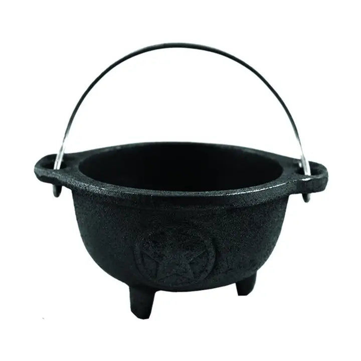 Heavy duty cast iron construction with carry handle for burning incense, offerings, casting spells, cleansing with sages, resins and potions.
