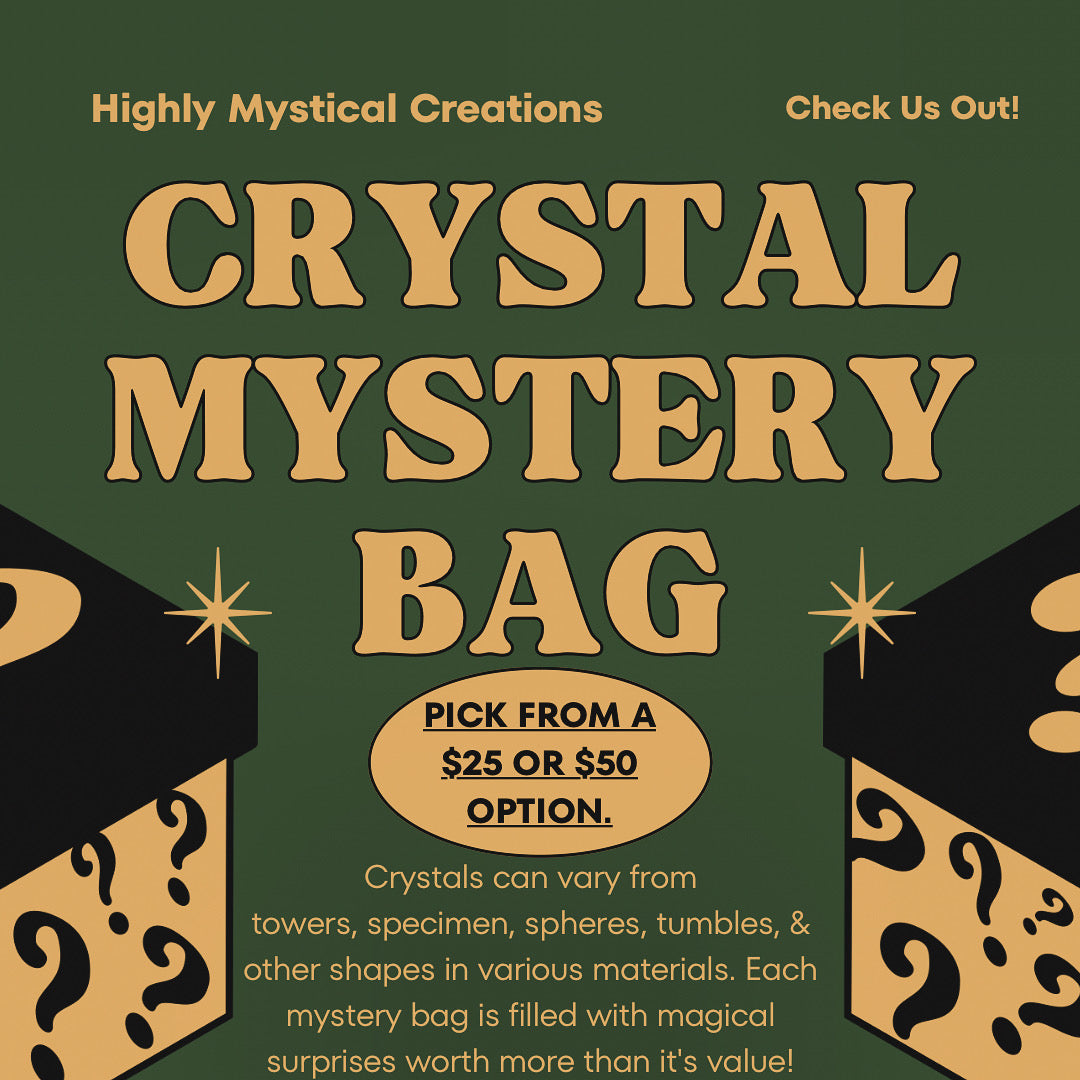 Discover the magic with our crystal mystery bags, available for $25 and $50! Each bag is packed with treasures worth more than their value. 🌟✨