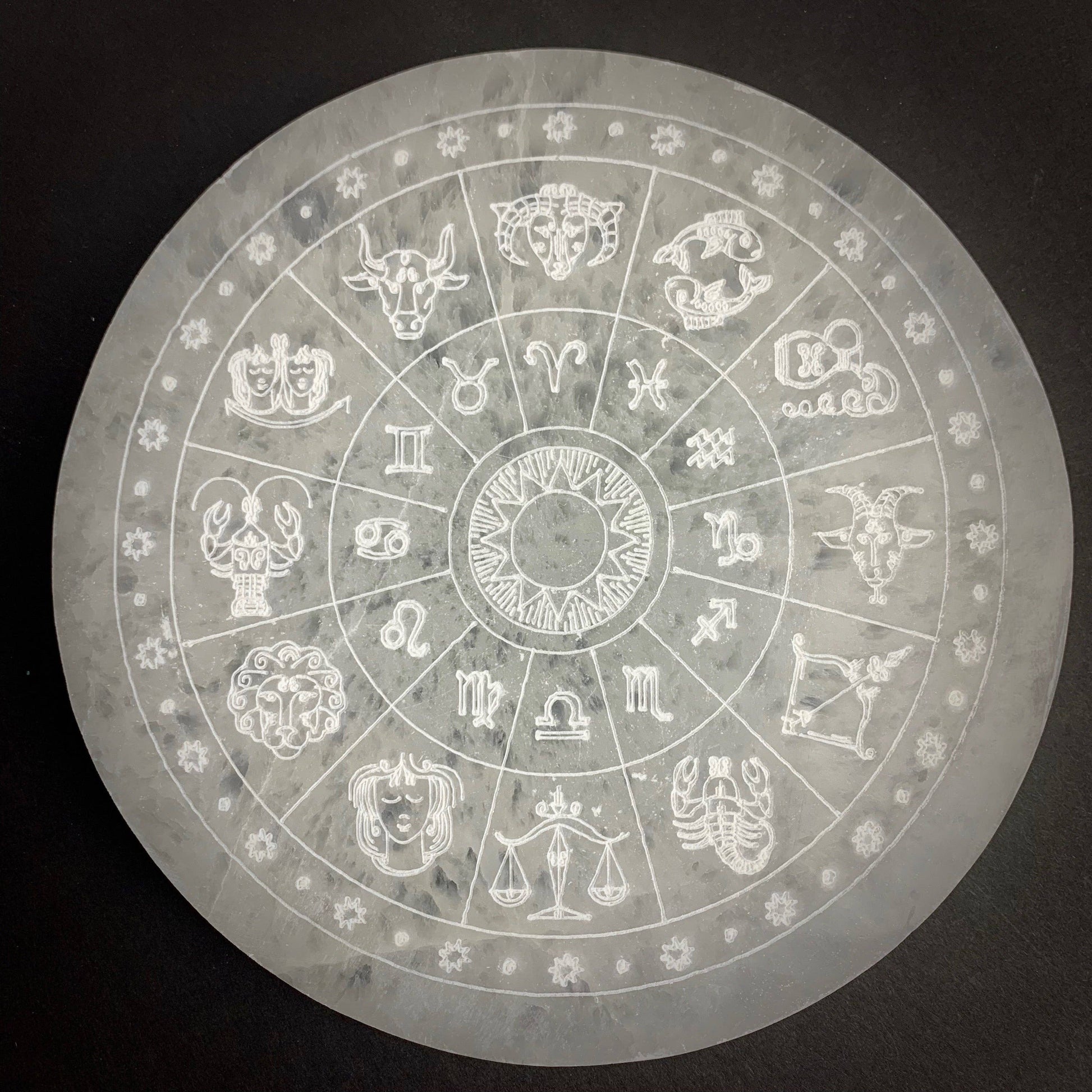 Selenite Zodiac Wheel Crystal Charging Plate (6 inch)