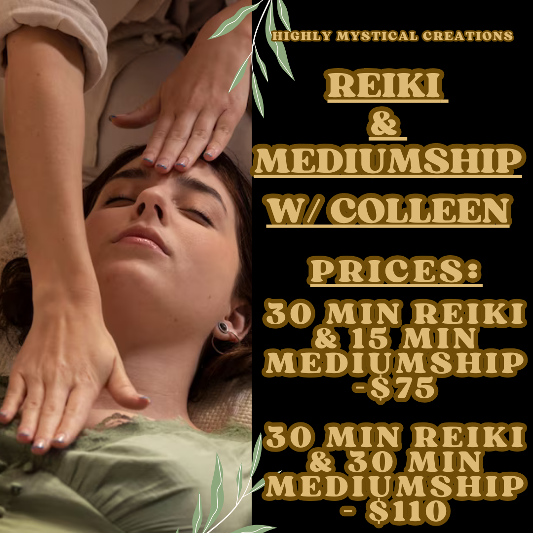🔹 30 Minutes of Mediumship – After your Reiki session, Colleen will connect with the spirits around you, offering messages of love, guidance, and support from the other side. As an experienced Medium, she serves as a bridge between realms, providing insight and validation through compassionate and ethical spiritual communication.